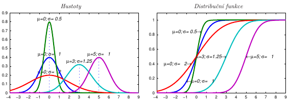 Na následujícím obrázku můžeme vidět hustotu pravděpodobnosti několika normálních rozdělení.