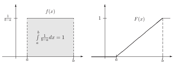 Rozdělení s konstantní hustotou, tedy každá hodnota z intervalu (a, b) je stejně pravděpodobná.[15][16]