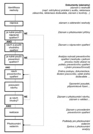 Náprava - opatření pro odstranění zjištěné neshody Opatření k nápravě - opatření pro odstranění příčiny zjištěné neshody nebo jiné nežádoucí situace Preventivní opatření - opatření pro odstranění příčiny potenciální neshody nebo jiné nežádoucí potenciální situace |