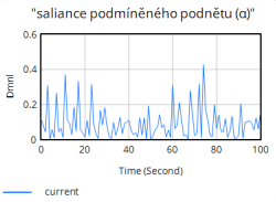 - saliance podmíněného podnětu (α) = citlivost * reakce (slinění)