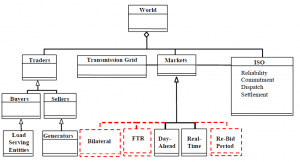 Computational worlds can composed of various agents, some of them can act on their own, have learning capability and memory. Others represent rather reactive elements of the world such as technology or nature. Some agents can be passive like house or patch of land. Composition of agents is also possible, music band agent can be for instance a composition of agents playing musical instruments. Agents are therefore ordered in hierachy as shown on AMES framework example. Agent can be simple-programmed, autonomous or human-like [8] In order for agents to operate in computational worlds, methods and protocols are required. These methods and protocols enable interactions between agents themselves, between agents artificial institutions e.g. market or between agents and the world itself. These protocol consits of rules for mediation between agents and serve as description of interaction between agents e.g. between market and agent. [3] For example in double auction model, agents may have following methods: