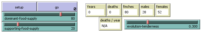 ovládací panel simulace Darwinovy pěnkavy