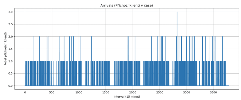 Grafické zobrazení dat příchodů vygenerovaných v Pythonu.