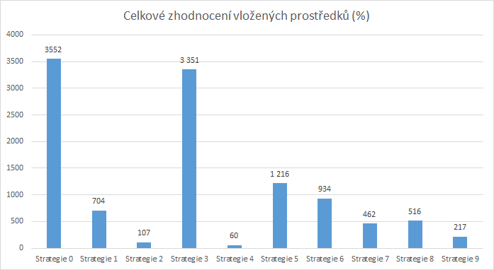 | Strategie 0 | vše investovat | 30 | 10 000 | 1 000 | 30 | 30 | 100 |