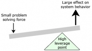 Změnu budeme chtít provést vynaložením co nejmenšího úsilí. Budeme tedy hledat co nejvyšší pákový efekt - bod působení, který nám zaručí, že i při vynaložení malé práce dojde k velké změně.