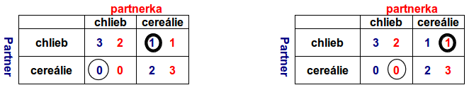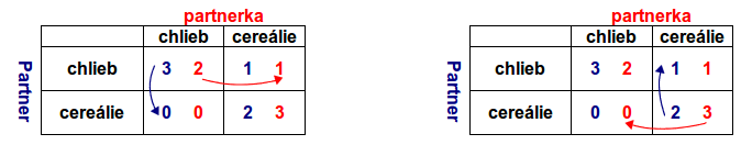 - Preferencemi (partner preferujete chléb, partnerka cereálie)