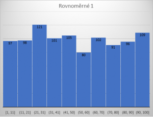 První graf rovnoměrného rozdělení hodnot od 1 do 100