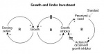 Archetype based on the Limits to Growth archetype. The difference here is that the limiting factor or factors dynamically develops along with the development of the entire system. Limitations are therefore not constant, but varies in time. The model shows the system which not enough to invests to itself and create its own limitations in future growth. Archetype is comprised of three loops, two Balancing Loops and one Reinforcing Loop.