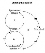 It is based on the archetype Fixes That Fail and it appear where short-term solutions are applied. Short-term solutions gradually lose their effect.