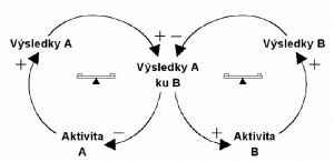 Vazba, která působí vždy jen v jednom směru. Působí stále větší a větší rozdíl mezi současným a původním stavem. Lze si ji představit jako spirálu. Důležitou charakteristikou také je, že má tendenci nabývat exponenciální podoby, tzn. ze začátku nejsou patrné žádné velké změny, postupně se ale její vliv neustále zvětšuje a čím déle je poté snaha tuto tendenci změnit, tím hůře se to činí.