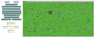 V rozhraní jsou tlačítka setup pro nastavení a go pro spuštění simulace. Dále tyto posuvníky, pomocí kterých je možno měnit proměnné.