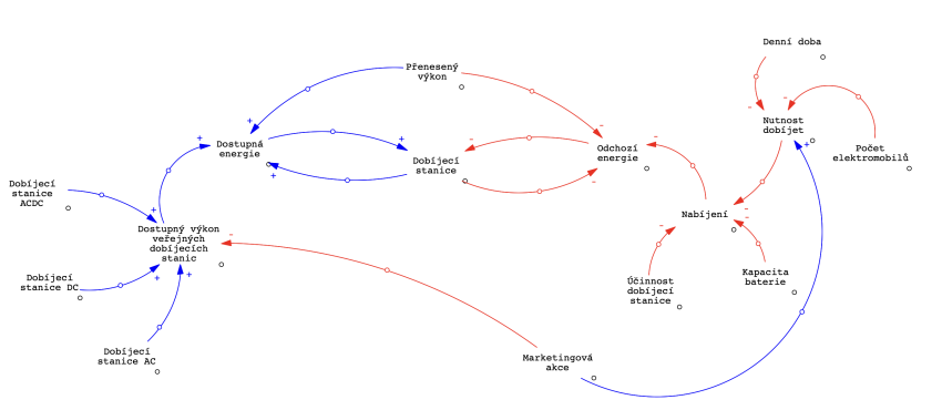 V České republice roste počet elektromobilů. Ty je nutné dobíjet a i když počet dobíjecích stanice roste, díky legislativním brzdným silám, jenž způsobuje pomalé povolování staveb dobíjejích stanic, může nastat problém s nedostupností dobíjecích stanic. V souvislosti s rychlým nárůstem popularity elektromobilů se vyskytuje stále naléhavější problém efektivního a udržitelného nabíjení. Dobíjecí stanice pro elektromobily představují kritický prvek v infrastruktuře pro podporu těchto vozidel. Zatímco elektromobily jsou klíčové pro přechod k udržitelnějšímu dopravnímu systému, jejich rostoucí počet klade také nové nároky na elektrickou síť a spotřebu energie. Problém spočívá v identifikaci, jak faktory jako počet dobíjecích stanic, počet elektromobilů, rychlost nabíjení (kapacita baterií), marketingové akce a dostupnost energie (výkonu) ovlivňují spotřebu energie při nabíjení elektromobilů na veřejných dobíjecích stanicích. Tato problematika je složitá a dynamická, proto je její modelování a simulace náročná. Pomocí Vensimu lze tato problematika analyzovat a pochopit, jak jednotlivé faktory ovlivňují celkovou spotřebu energie. Simulace tak může poskytnout informace pro rozhodování o rozvoji infrastruktury pro dobíjení elektromobilů, plánování kapacity energie a strategiích pro řízení spotřeby energie.