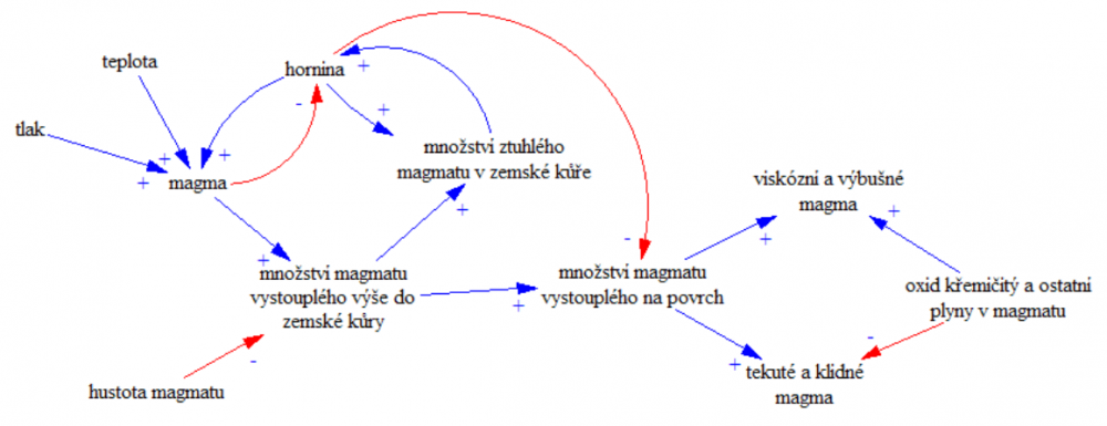 Následující obrázek zachycuje průběh magmatického procesu.