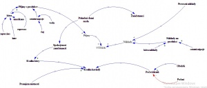 Vztahy mezi entitami znázorňuje diagram kauzálních smyček (anglicky "casual loop diagram"): | Vztahy mezi entitami znázorňuje diagram kauzálních smyček (anglicky "casual loop diagram"): | ||