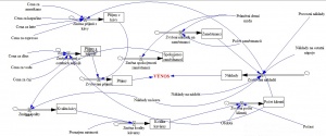 Diagram stavů a toků (anglicky "stock and flow diagram") znázorňuje model simulace se všemi níže popsanými prvky a jejich vazbami: | Diagram stavů a toků (anglicky "stock and flow diagram") znázorňuje model simulace se všemi níže popsanými prvky a jejich vazbami: | ||