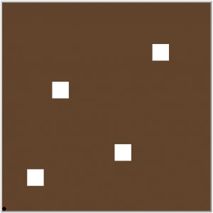 - Simple znamená, že se v prostoru vyskytují 4 překážky v pevně daných pozicích