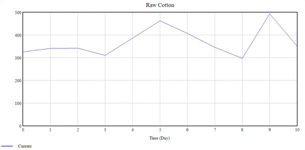 Expression:Fiber quality*RANDOM NORMAL(1600, 2000, 1800 , 30 , 100 )*Cotton fiber+Cotton seed*RANDOM NORMAL(150, 200, 170 , 10 , 100 )+Cotton Lint*RANDOM NORMAL(300, 450, 350 , 20 , 100 )+Trash and Moisture waste*50